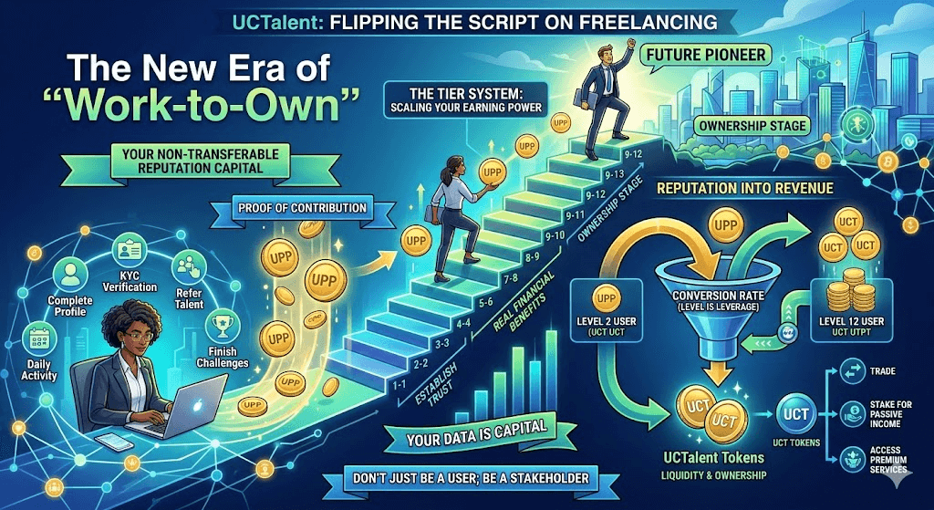 In the traditional freelance world, you work, you get paid, and the platform takes the rest. You own nothing. UCTalent is flipping the script. Here, your daily activity, your network, and your skills are not just data—they are Capital.